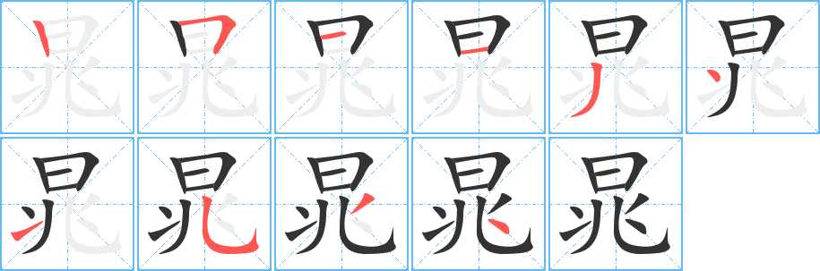 晁字笔画写法