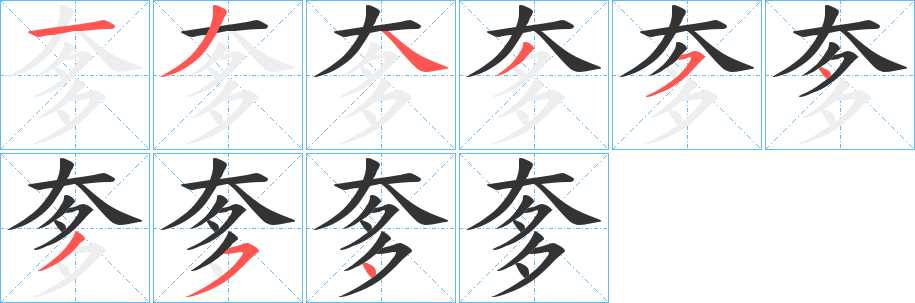 奓字笔画写法