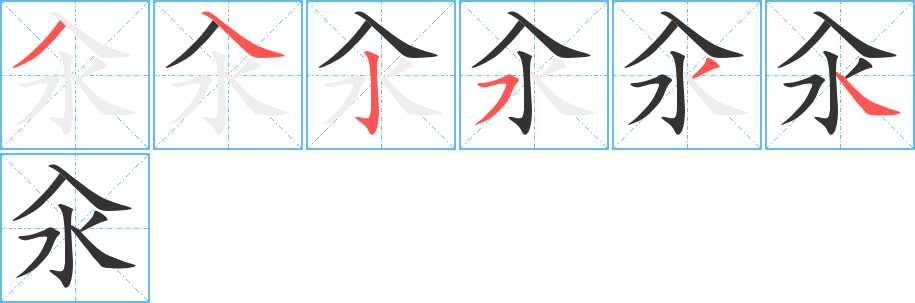撇,捺,竖钩,横撇/横钩,撇,捺