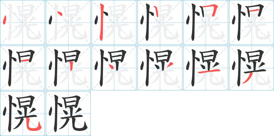 愰字笔画写法