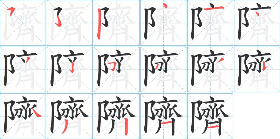 隮字笔画写法