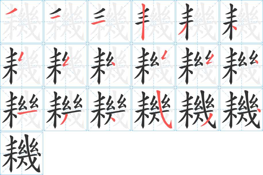 横,横,横,竖,撇,点,撇折,撇折,点,撇折,撇折,点,横,撇,点,斜钩,撇,点