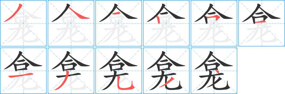 龛字笔画写法