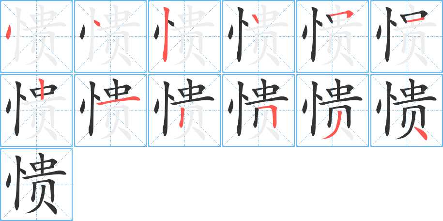 愦字笔画写法