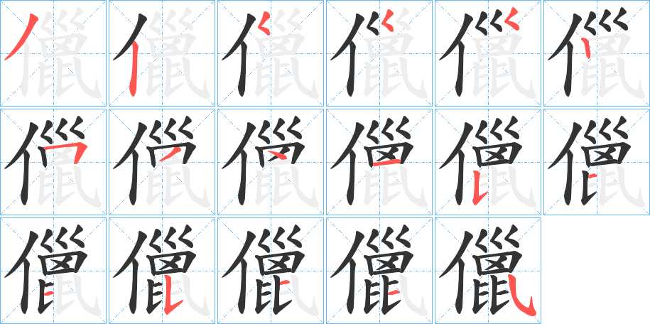 儠字笔画写法
