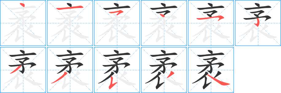 袤字笔画写法