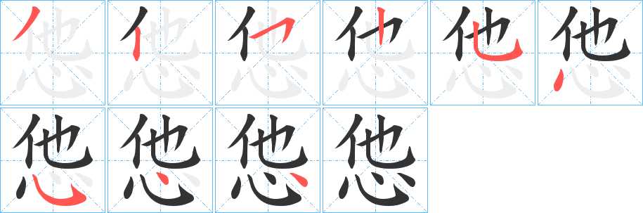 怹字笔画写法
