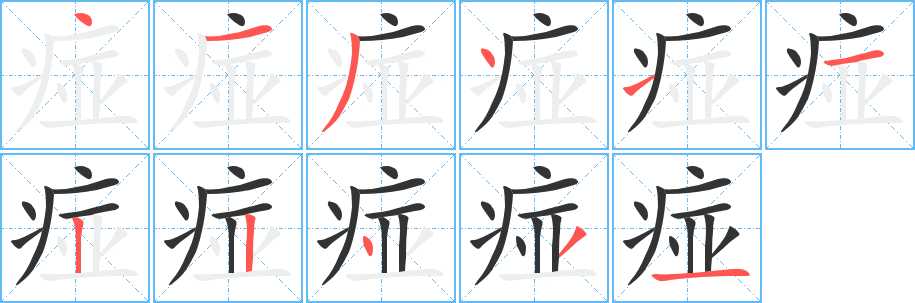 痖字笔画写法
