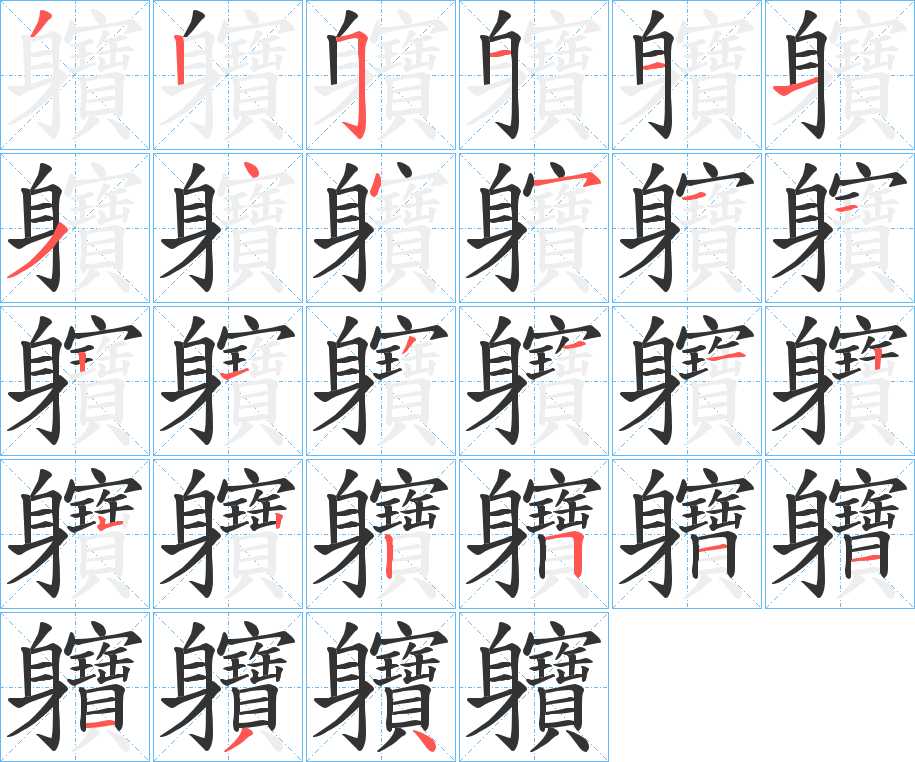軉字笔画写法