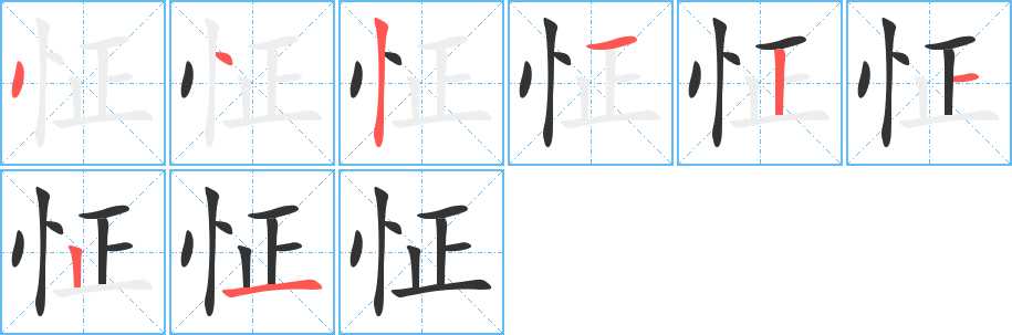 怔字笔画写法